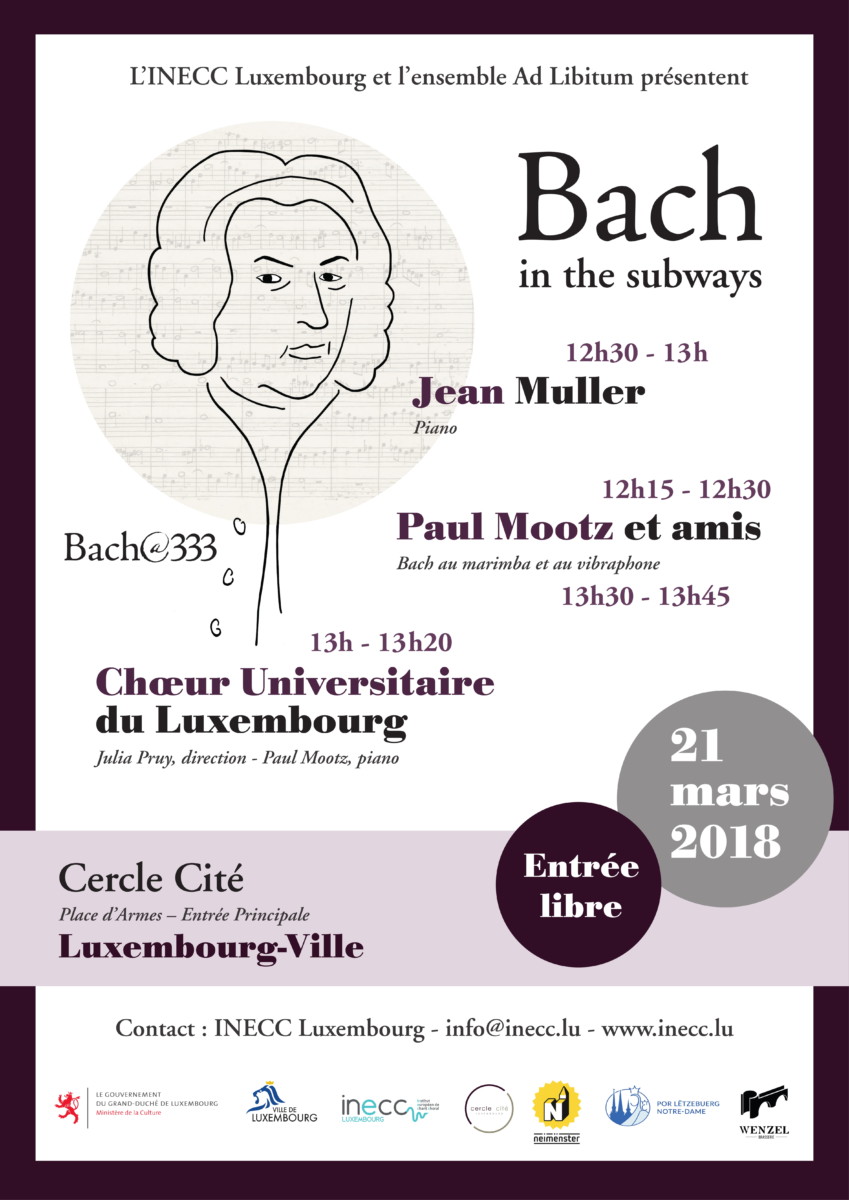 Date: 21 March 2018 from 13h00 to 13h20 Location: Cercle cité, 2 Rue Genistre, 1623 Luxembourg On Bach’s 333 anniversary, we had a lot of fun performing several pieces of Bach at the Cercle cité in Luxembourg-city!